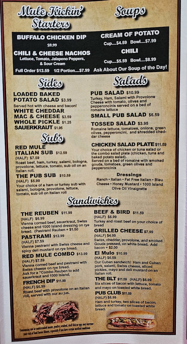 Introducing the menu at Red Mule Pub, a charming eatery located at 1208 S Broad St, Brooksville, FL, offers a delightful journey into classic comfort food. With a rustic, nostalgic ambiance enhanced by Ole Time Rock 'n' Roll music, this pub creates a warm, inviting atmosphere for diners.